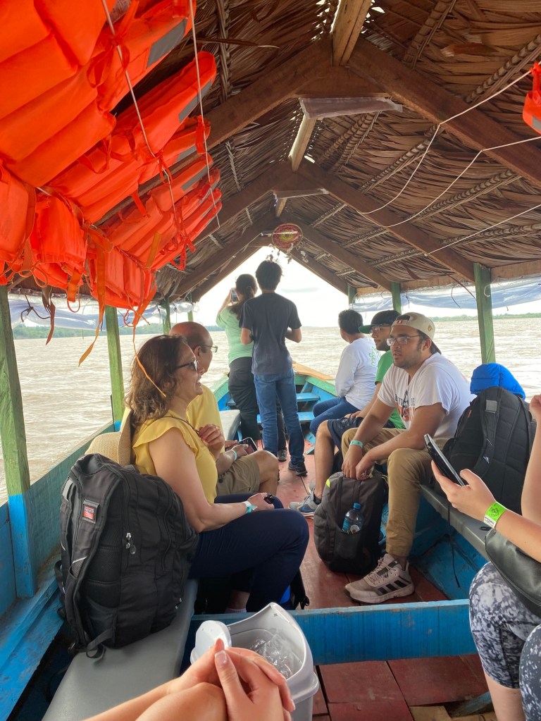 We arrived at the airport and took a small car to the lodge meeting site. Driving around in Iquitos was very exhilarating. There were small carts pulled by motor bites weaving in and out traffic. We got to the central office for the tour group and loaded our bags onto our own cart/bike to head to the dock. We definitely overpacked. You have to walk along planks to get to the small wooden boat that takes you down the river. The guides laughed as we tried to carry all our luggage.