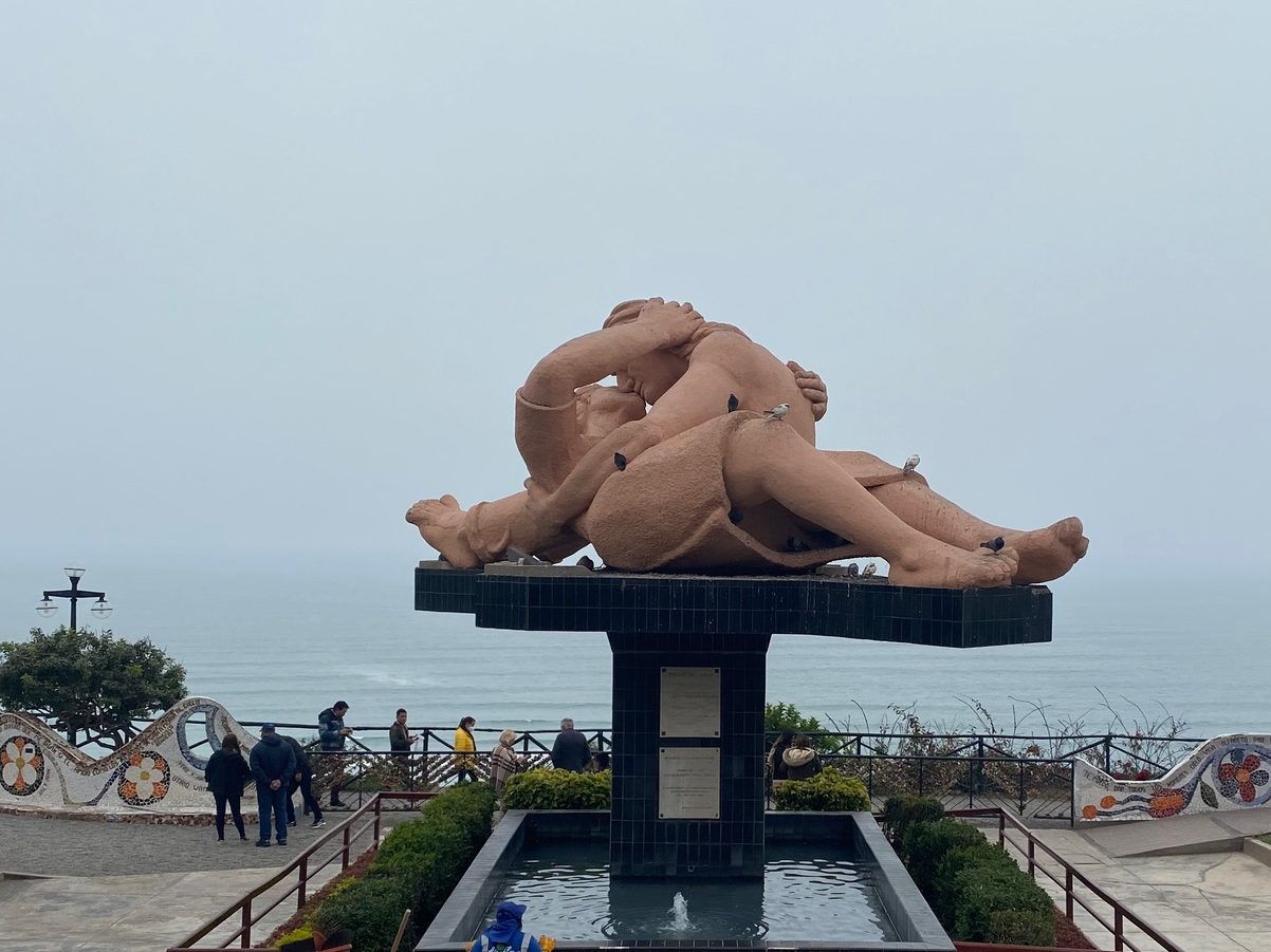 Our hotel concierge was able to direct us to a local Peruvian favorite called La Lucha Sangucheira Criollo. This restaurant they had sandwiches and smoothies/milk shakes that were a great start to the day. This was also located right next to the Central Park in Miraflores and Kennedy Park. We did some sight seeing along the way as we walked to Parque de Amor. There is a statue “El Beso” of two lovers intertwined that overlooks the ocean. This is a popular site to watch the sunset.