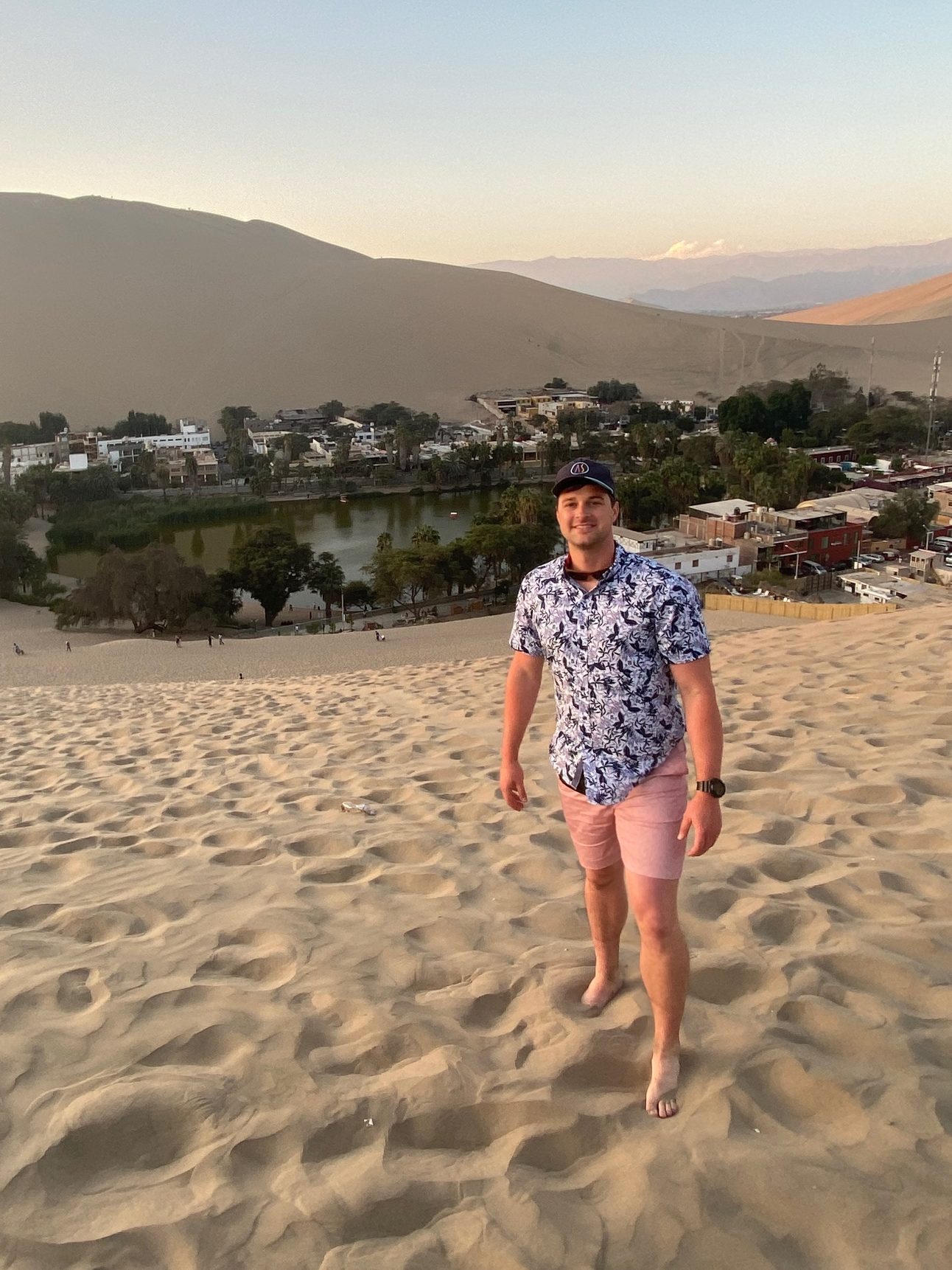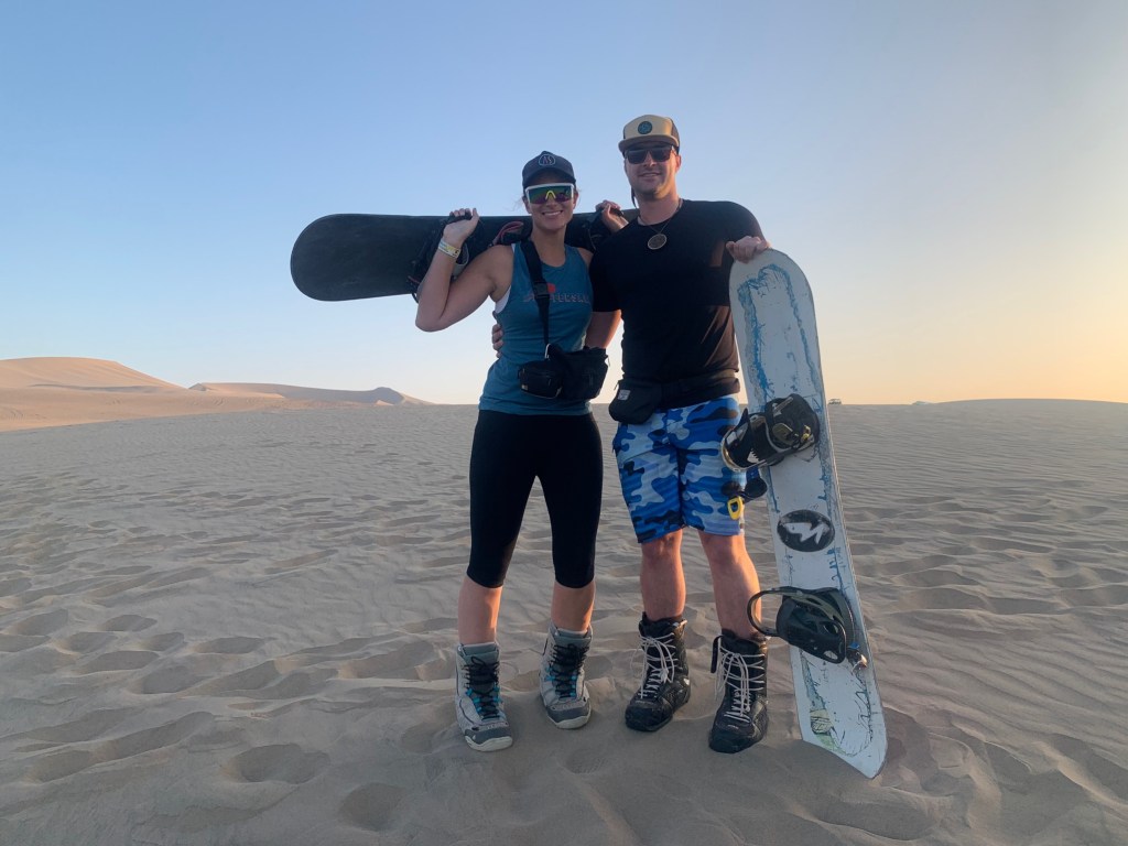 HUACACHINA. A place like no other. A desert oasis surrounded by the Ica desert. We arrived in time for a sunset dune buggies tour and sandboarding. We are advanced snowboarders and have to say sandboarding was not the same. The sand dunes were not super large that we were at so it was hard to get much momentum behind you to turn correctly. The equipment had also seen better days. We got about two runs down the dunes each. I would maybe not bother spending the extra money if your trying to stay cost conscious. The buggie tour was a blast! The drivers did not hold back. The sunset was beautiful. It did get a little chilly (May is winter). Bring jackets for the evening.
